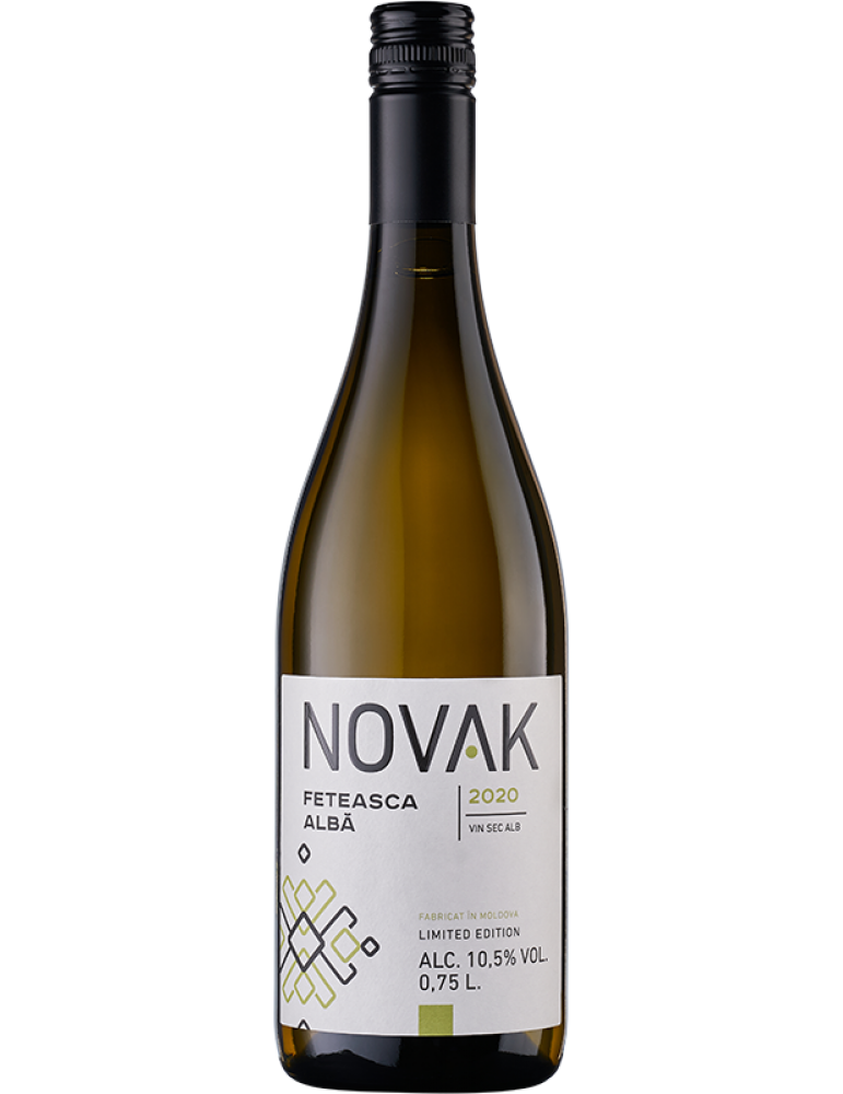Vin alb sec Novak „Feteasca Albă” este produs din soiul de struguri albi „Feteasca Albă”, are o culoare verzuie cu nuanțe de paie, o aromă complexă de flori de tei și salcâm, mere și citrice. Gustul este proaspăt, ușor și crocant.